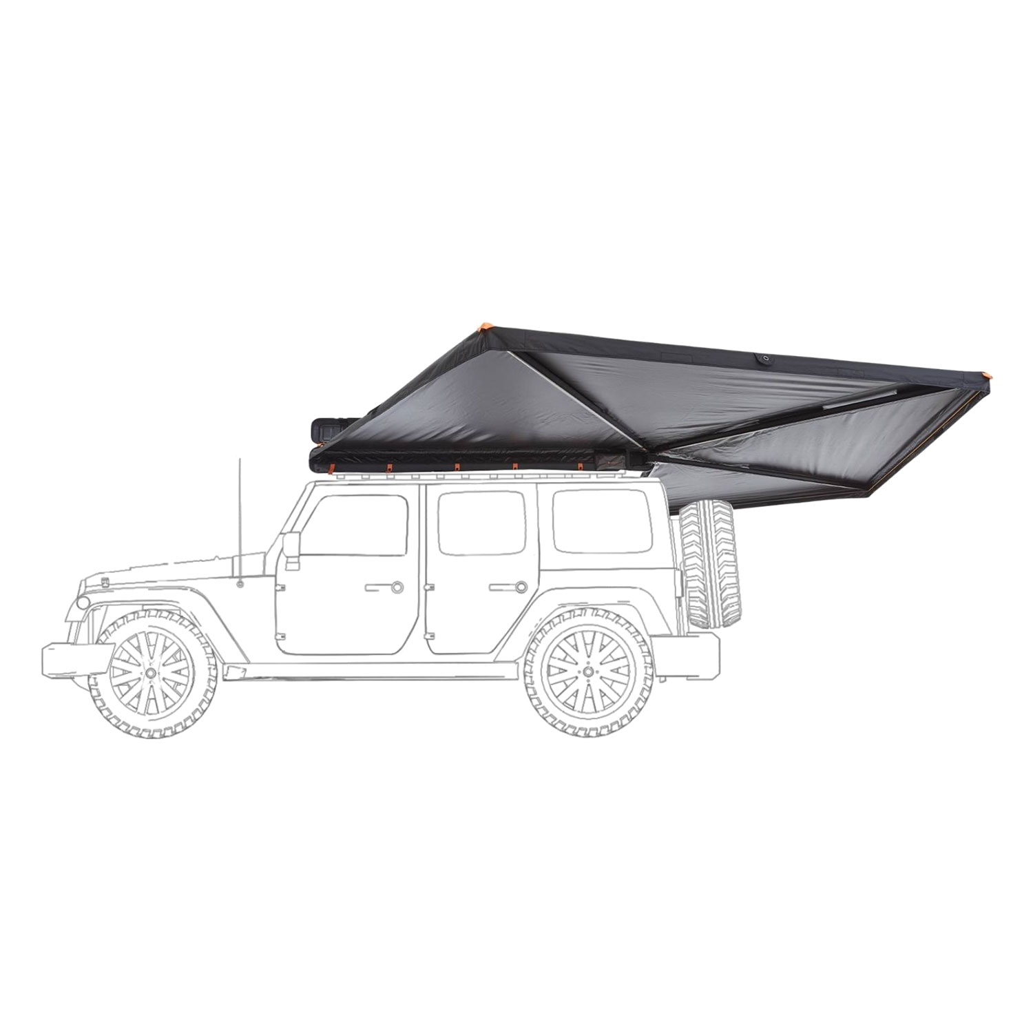 Den automatiska mekanismen öppnar markisen på bara ca 15 sekunder, så du får omedelbart ett väderskyddat utrymme. Det 270° stora taket räcker för 6–8 personer, vilket snabbt förvandlar bilen till en skyddad samlingsplats vid camping, vanlife eller roadtrip.