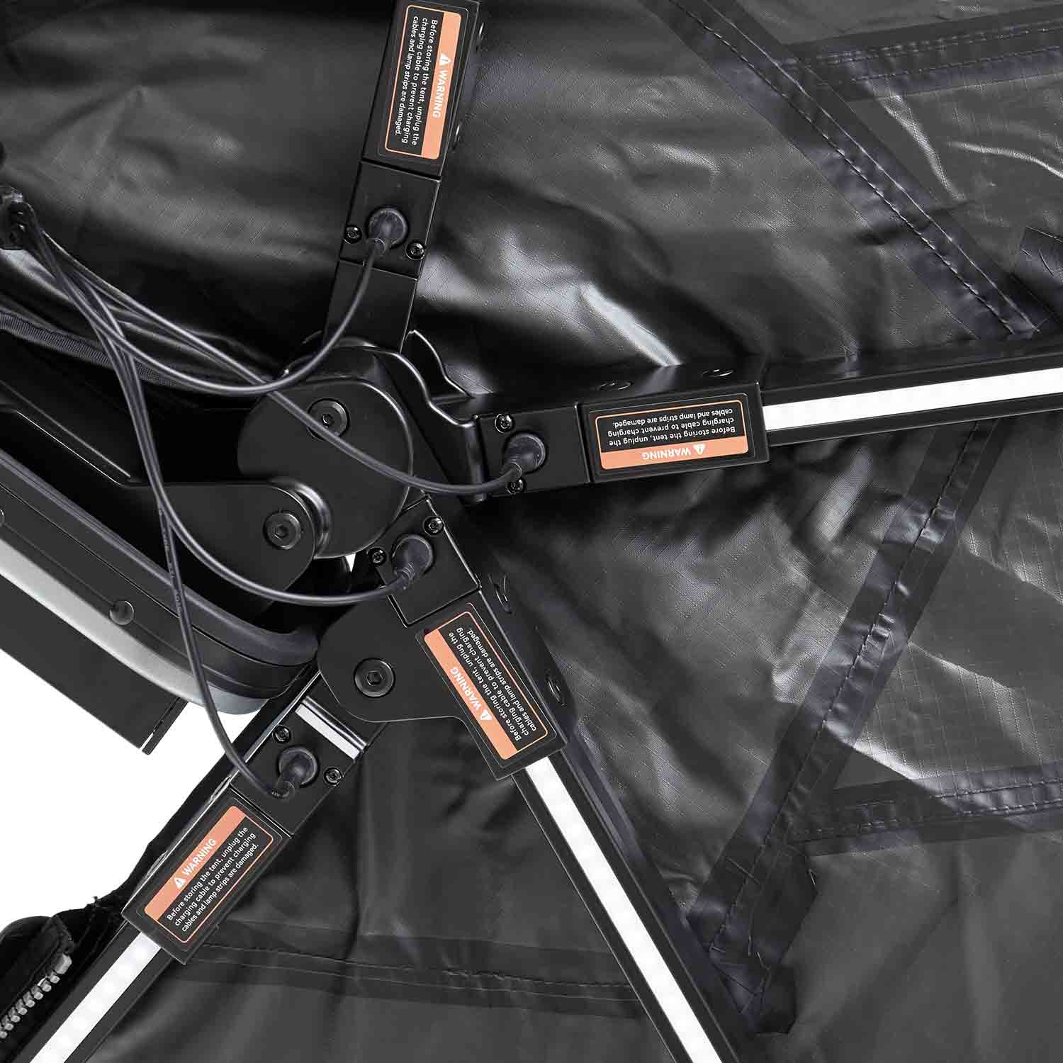 ⚠️ Innan markisen fälls ihop och armarna förs tillbaka in i hårdskalet måste anslutningskabeln till LED-belysningen kopplas ur och förvaras korrekt. Detta förhindrar skador på både kabel och markis.